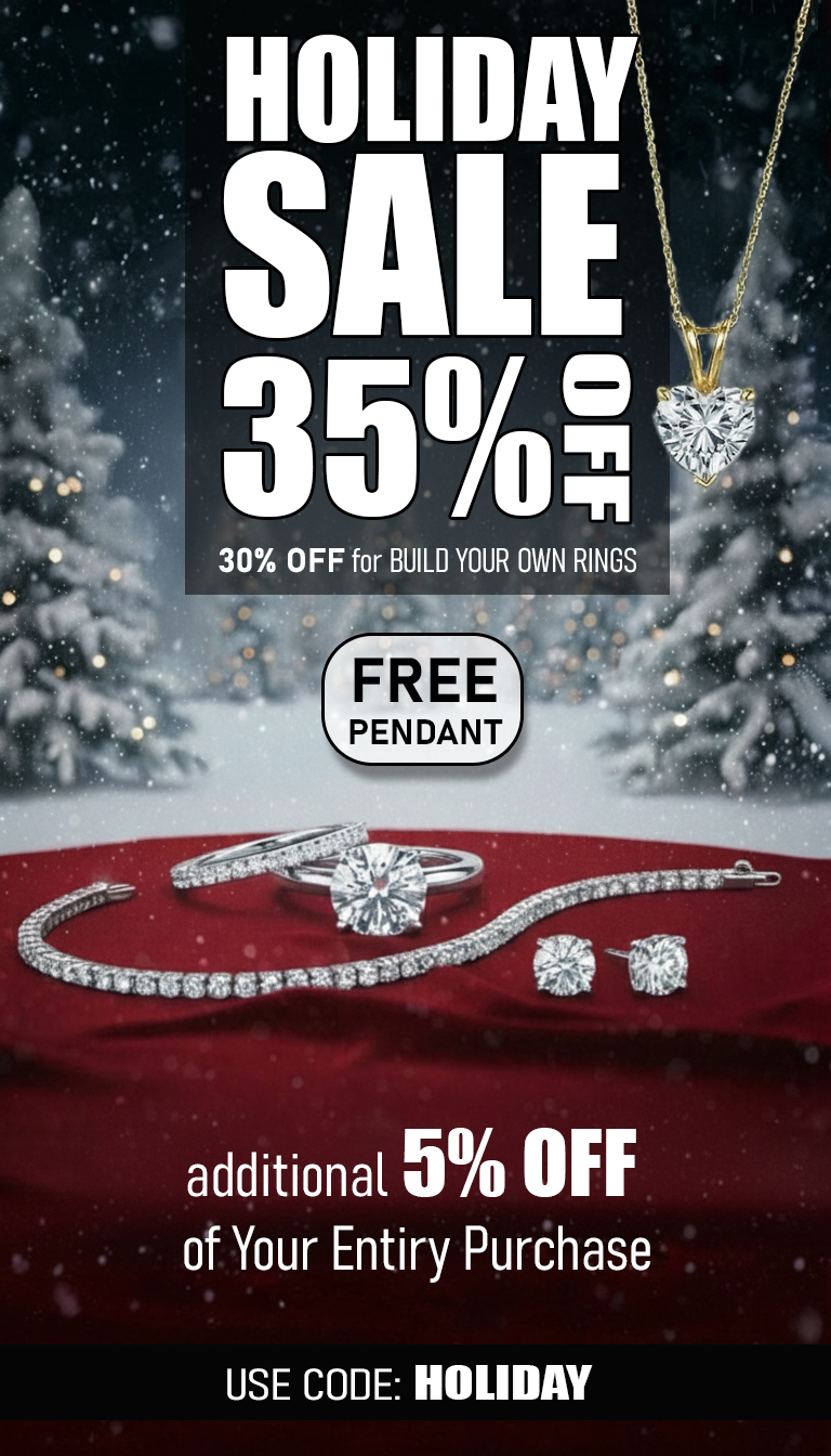 Receive Sterling Silver Round Cut 1/3 ctw Lab Grown Diamond Pendant (value $350) with a purchase of $2,000-$4,999, receive Sterling Silver Round Cut 1/2 ctw Lab Grown Diamond Pendant (value $550) with a purchase of $5,000-$7,499, or receive Sterling Silver Round Cut 1 ctw Lab Grown Diamond Pendant (value $950) with a purchase of $7,500 or greater.